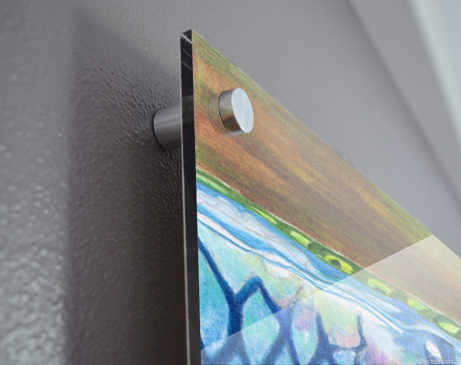 Impression sur acrylique avec entretoises ( cylindres métalliques )