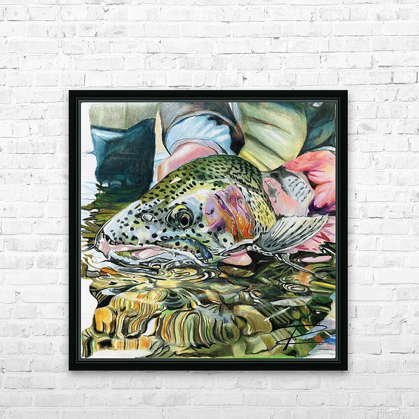 Impression pleine et montage avec un cadre flottant à l’arrière de 3/4 pouce d’épaisseur avec fil de suspension.