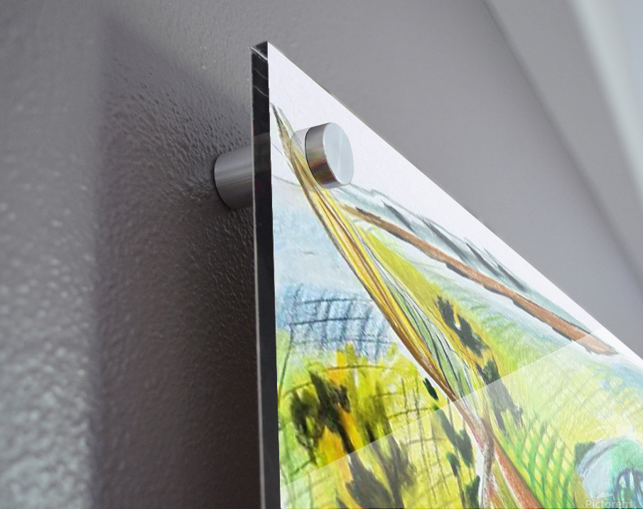 Impression sur acrylique avec entretoises ( cylindres métalliques )